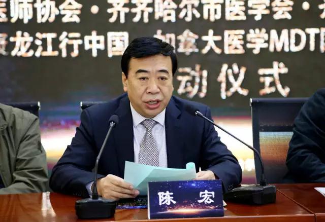 启动仪式由齐齐哈尔市医师协会秘书长,我院副院长、南院党委书记、执行院长黎原主持,省卫计委人事处处长王国昌,省人社厅外专局引智项目处处长王进东,省医师协会副会长王太和,市卫计委党委书记、主任刘锋,市医师协会会长、我院党委书记、院长陈宏,市人社局副局长李宇华,哈医大附属第一医院副院长刘宏宇,附属第二医院副院长谭文华以及加拿大多伦多大学微创外科中心教授约翰·哈根出席会议并在主席台就坐。