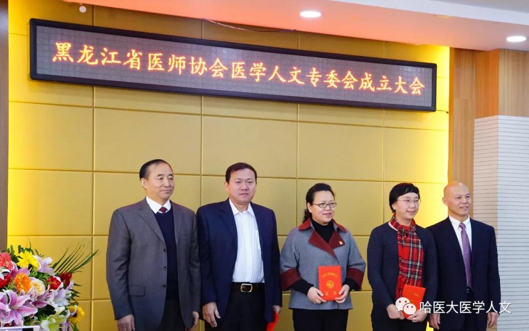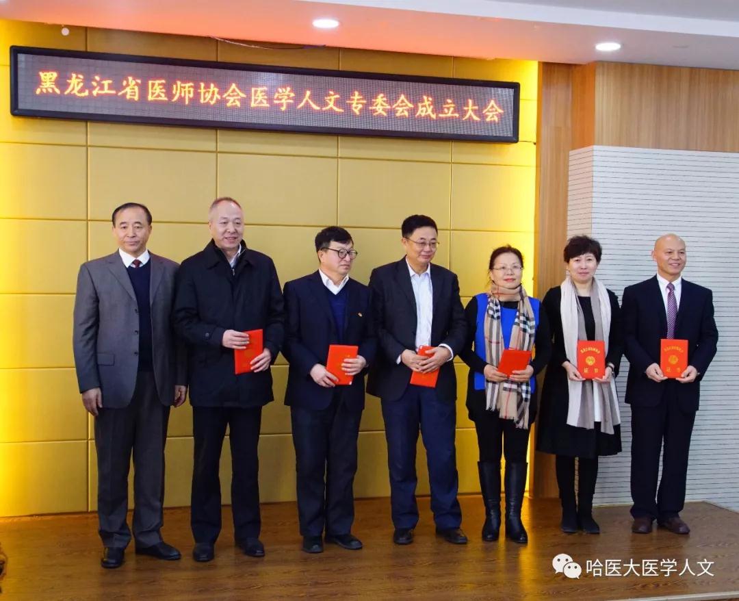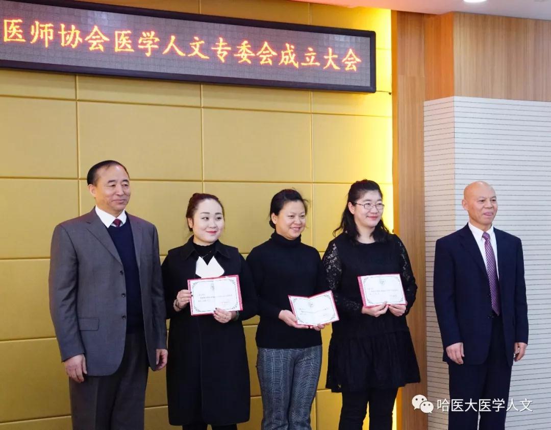 经过公平、公正的选举过程,黑龙江省医师协会医学人文专业委员会首届委员诞生。李剑锋秘书长为主任委员尹梅教授颁发证书,孙同波书记、李剑锋副会长、王太和副会长为常委和委员代表颁发证书,三位常委代表分别是哈尔滨医科大学附属第二医院急诊科主任邓颖、齐齐哈尔市第一医院副院长杨晓光、哈尔滨市第一医院高强,三位委员代表分别是黑龙江省公共频道健康龙江直播室主持人于文皓、哈尔滨医科大学大庆校区张槊、牡丹江第二人民医院王冬梅。