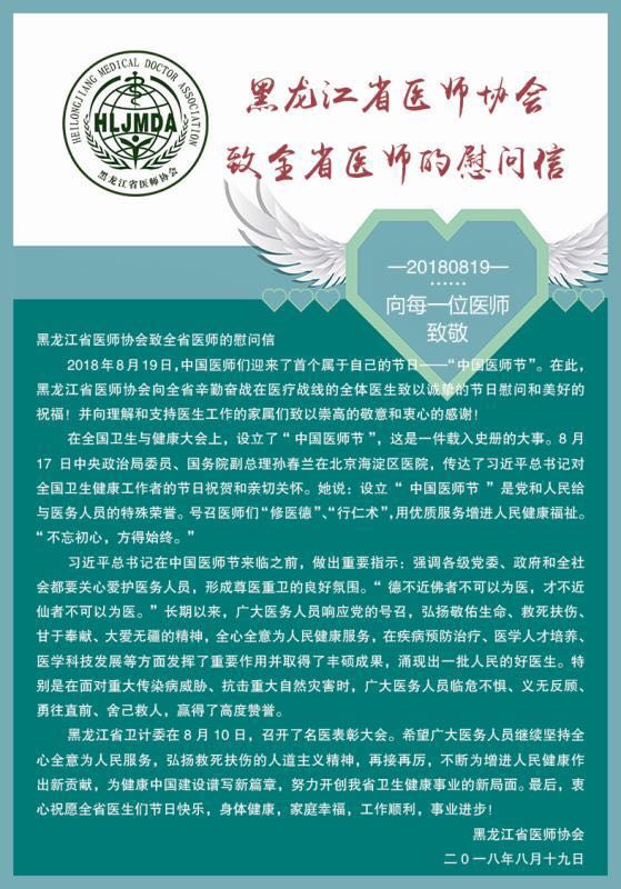 黑龙江省医师协会致全省医师的慰问信