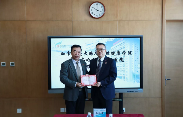会上,陈宏与加拿大白求恩医学发展协会副会长进行合作签约,党委委员、理事、南院执行院长黎原与协会代表互赠礼品,深化中加合作至此迈入新征程。