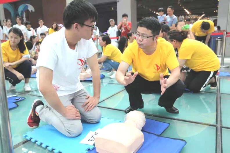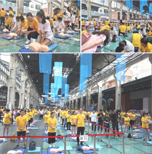 7 月 7 日上午 10 点钟,以“心手相连,点亮生命”为主题的公众心肺复苏培训公益活动的“首秀之旅”在南岗区西城红场一楼艺术长廊拉开帷幕,该活动由黑龙江省医师协会麻醉青年专业委员会、哈医大三院麻醉科、中国心胸血管麻醉学会心肺复苏委员会哈尔滨市办事处承办。活动现场播放了精心制作的心肺复苏宣教片,邀请到真实公众进行了心肺复苏的成功急救故事演讲,并且由专家手把手向市民传授了心肺复苏技能。本次活动提供高级心肺复苏模拟人 80 余具,现场带教专家 100 多名,共进行了 4 轮一对一教学培训,报名参加培训的市民共 400 人,总计千余人参与学习及互动。